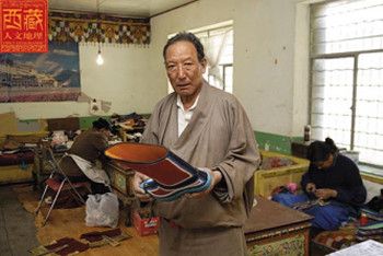 赤列塔青成年后,适逢西藏实行民主改革,拉萨市城北区的夏萨苏和冲赛康各成立了一家“鞋业互助社”,八位鞋匠师傅每人掏50元钱入股,赤列塔青父子就这样成了互助社的第一批成员。“后来的事情变得很复杂!”赤列塔青说。从企业名称和办公地点的多次变更,可以了解到搞民族手工业不是一件容易的事情。西藏平叛后这个鞋业互助社改名胜利合作社,后来又叫前进鞋帽合作社,再后来改叫城关区鞋一厂,现在的名字是彩泉民族手工业公司。原来的厂址在老冲赛康附近,后来搬到木鹿寺后面,现在驻进城北的佳村曲美,厂名变了,地址变了,不变的是人。赤列塔青认为,只要人在,企业就有希望。