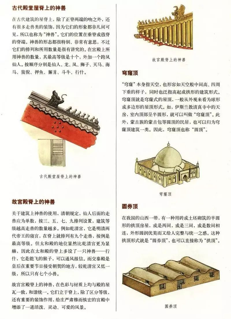 中国古代建筑屋顶不仅样式多,而且组成部分也有好几种,主要由屋面、屋脊等部分组成,而且有严格的等级制度。