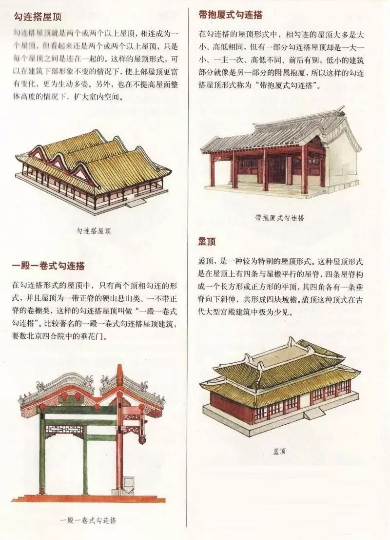 中国古建筑屋顶千变万化,瑰丽多姿,不同的屋顶相互组合、穿插,又会形成不同的屋顶形式。