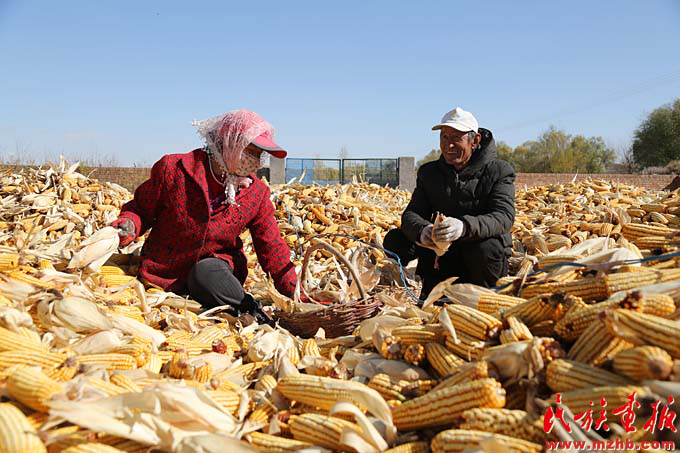 陈绿师老两口忙着处理刚收的6万斤玉米(陈涛 摄影)