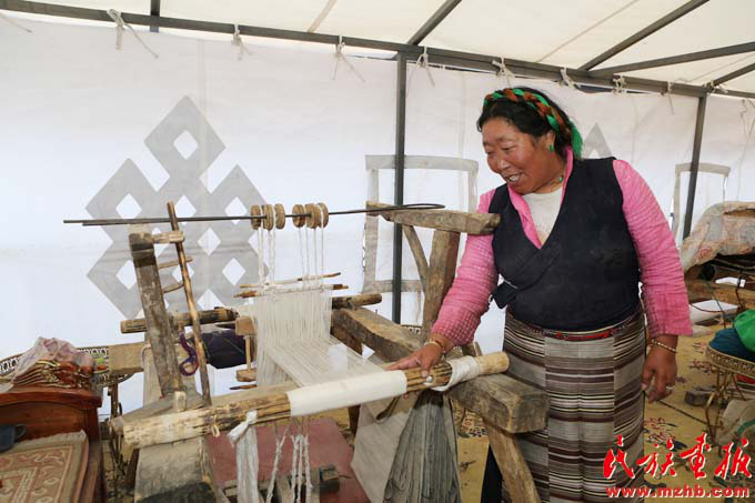 阿妮做氆氇编织已有13年了,村里的手工艺制作合作社为她提供了平台(黄若天 摄影)