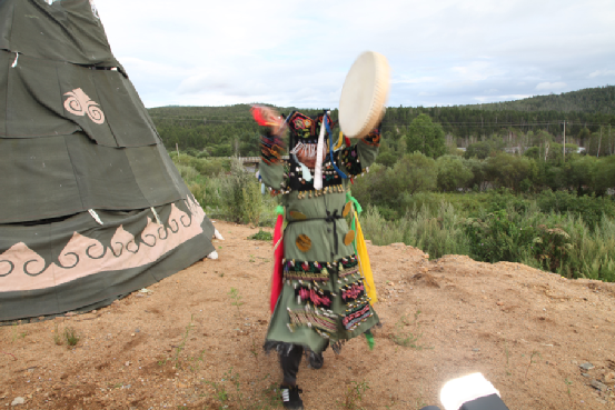 鄂伦春族萨满舞表演。方征摄于新生乡,2013年8月