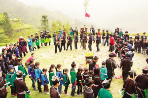 八寨苗:“招回”自己的龙 简介:苗族人认为龙是兴风降雨的神灵,苗族祭祀龙,是祭祀祖宗神灵的大典;在苗族服饰、刺绣、蜡染、剪纸、银饰中,龙的图案随处可见;每年农历五月,苗族要欢度龙船节;龙灯在苗族地区也是随处可见…...【点击查看详情】 -