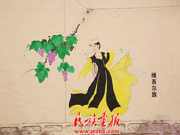 壁画上的维吾尔族姑娘惟妙惟肖