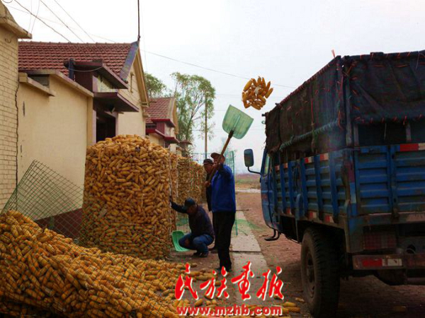 村民将丰收的玉米装车准备拉去卖掉