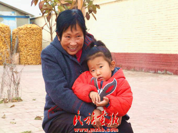 冬日午后,在自家门外闲坐的祖孙俩晒着太阳
