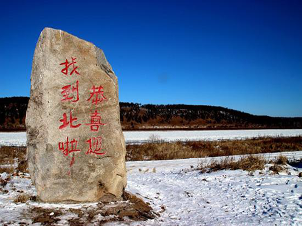 沿着形态各异的“北”字,可以走到中国最北端的广场——北望垭口。“东经122°20'43。48〃E北纬53°29'52。28〃N”的标志就立在这里,旁边一块巨石上刻着“中国北极点”。