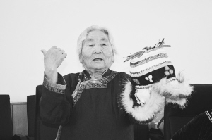 老人演唱鄂伦春族传统音乐“赞达仁”。