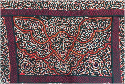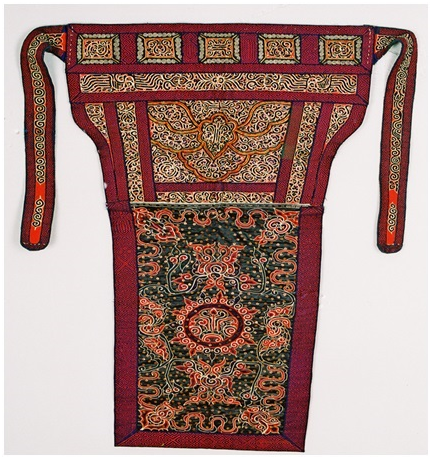 正因马尾绣的工艺独特,蕴含着丰富的文化内涵,2006年水族马尾绣入选第一批国家级非物质文化遗产名录。而马尾绣背儿带更是将水族马尾绣的艺术价值体现得淋漓尽致。民族文化宫博物馆所藏的这件马尾绣背儿带,刺绣精美,展现了水族妇女娴熟的刺绣技艺,是研究水族民俗、民风、图腾崇拜等民族文化的珍贵艺术资料。