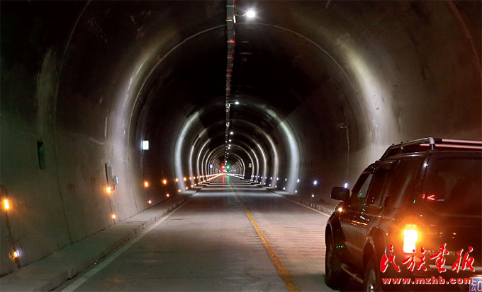 驶过灯火通明的隧道,穿越高耸的大山只用了不到十分钟的时间,隧道拉近了独龙江与外界的距离(和勇 摄影)