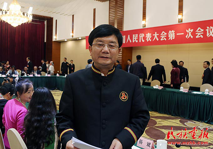 2018年3月13日,全国人大代表,中共楚雄彝族自治州委书记杨斌接受《民族画报》记者采访