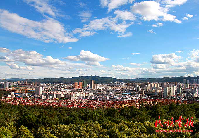蓝天白云下美丽的楚雄彝族自治州楚雄市区