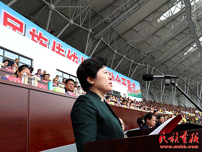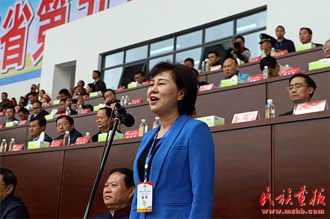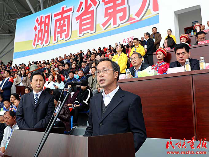 湖南省委常委、统战部部长黄兰香宣布湖南省第九届少数民族传统体育运动会开幕(刘怡 摄影)