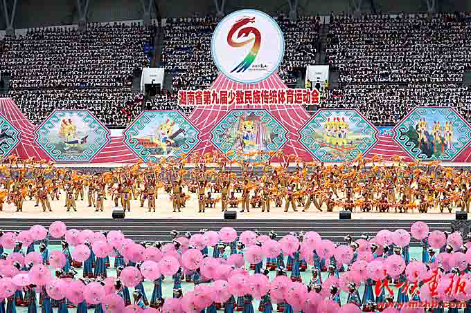 10月16日,湖南省第九届少数民族传统体育运动会在湘西土家族苗族自治州龙山县开幕