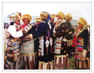 藏族妇女腰间佩戴银佩饰