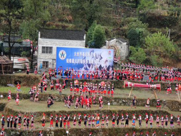 南岗古瑶寨欢度盘王节时举办的长鼓展演活动(摄影:王铁志)