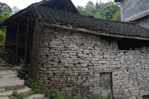 石板房以石条或石块砌墙,墙可垒至5至6米高;以石板盖顶,风雨不透。总之,除檩条、椽子是木料外,其余全是石料,甚至家用的桌、凳、灶、钵都是石头凿的。一切都朴实无华,固若金汤。这种房屋冬暖夏凉,防潮放火,相对采光较差。