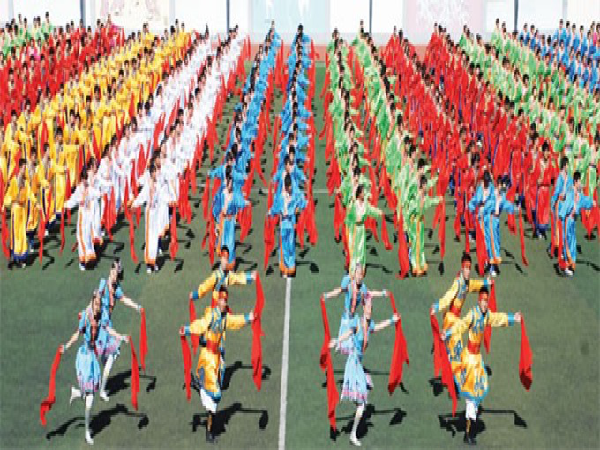 通辽蒙古族中学把蒙古族安代舞改编成健身操,并作为学校大课间活动的重要内容,受到了师生们的欢迎