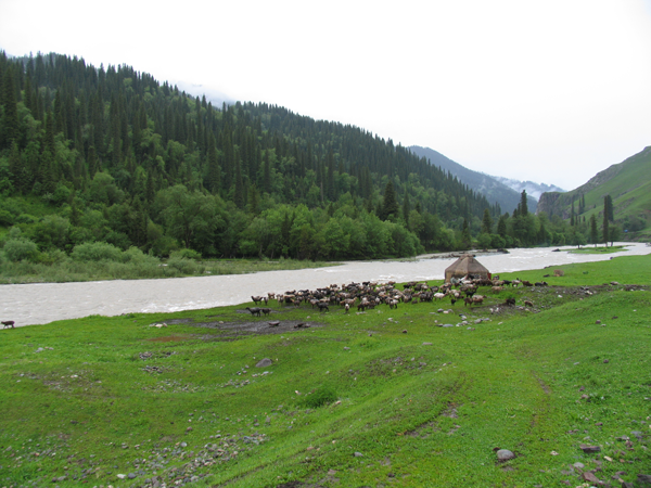 哈萨克族人民大部分都生活在土壤肥沃、水草丰美的高山山麓、河谷、盆地地带,以游牧为业。我国有天山山麓、阿尔泰山南坡等五大牧场,在这样独具优势的自然环境与地理环境中,哈萨克族人民过着逐水草而居的幸福生活,他们视季节变化而迁徙到最适宜放牧的牧场。