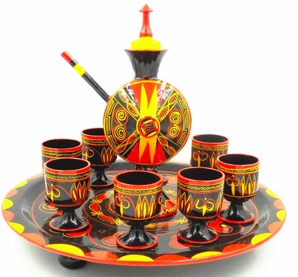 彝族漆器种类很多,仅餐饮具就有餐桌、饭盘、肉盘、汤钵、大小碗、勺、舀酒瓢等;酒具,有酒壶、酒杯等。民族风格特别突出的是鹰爪杯、雁爪杯、牛角杯和野猪蹄杯等饮酒器皿。鹰、野猪等都是很凶猛的禽兽,用凶猛动物身上的材料做酒杯,标志着主人的灵巧与勇猛。他们认为战胜了灵巧与凶猛的东西,其本身就更灵巧与勇猛。