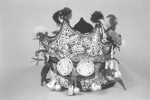 绣花帽呈六角形,其上部造型是模仿侗族古楼翘起的房檐而制做的,被侗族儿童视为心爱之物。