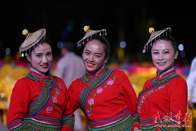 对现在美好生活的满足感洋溢在毛南山乡姑娘们开心的笑脸上