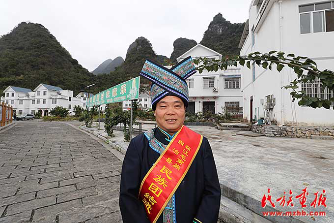 环江毛南族自治县大安乡可爱村党支部书记覃福勇带领村民移民搬迁进了新村