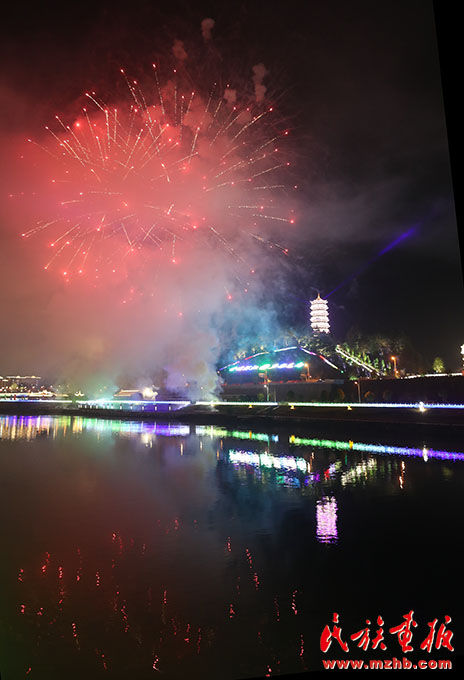 节日里姹紫嫣红的烟花吸引了很多毛南山乡的百姓们前来观看