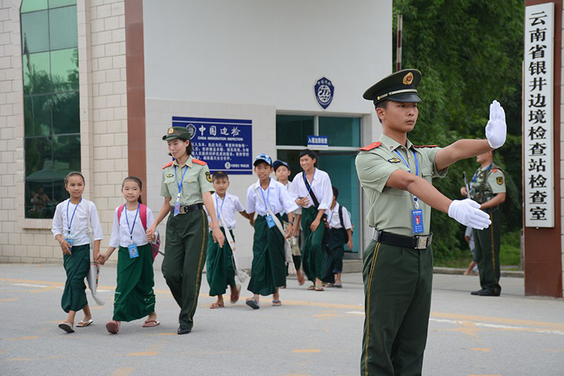 银井边境检查站官兵为缅籍学生当安全员  李富贵/摄
