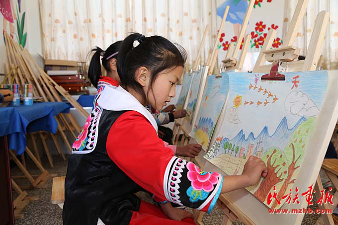 看过腊湾民族小学课间操的人都会说:“腊湾民族小学的课间操都是跳出来的。”然而,对于这所双语教学的民族小学来说,其民族特色远不止于此。穿彝族传统服装、讲彝语也是这里的教育特色。
