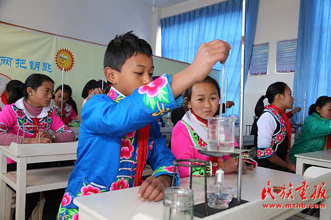 课堂上,李有顺老师正在给三年级的孩子们上语文课。这里的语文课是双语教学,孩子们不仅要学习汉语,还要学习简单的彝文,实现双语人才的培养。李老师告诉记者:“腊湾村是典型的民族聚居村,这里大部分群众都是彝族,孩子们从生下来,家里使用的语言就是彝语。所以,我们从低年级开始,就要教孩子们如何使用彝族语言文字和汉语言文字,我们的授课基本上由彝族老师来承担,必须懂得彝语,用彝汉双语给孩子们上课。只有这样才能引导孩子们从彝语环境逐渐向汉语环境转换。”