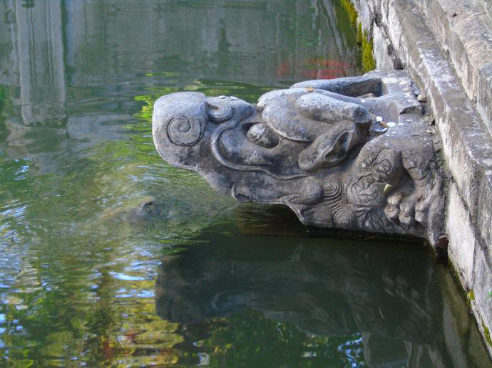 螭首是古代建筑石作制度中的主角之一,有平衡台基望柱的重力和排水的功能,同时也是建筑上的装饰构件,是标志着封建礼制建筑等级的象征,是实用与装饰的完美结合的建筑装饰小品。节奏和韵律是中国古建筑的重要特点。