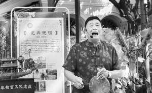 后来,在一个民俗文化节上,吴家耀手执龙舟杖表演龙舟说唱的情景,引起了媒体的关注。他还带着这一根龙舟杖,把龙舟说唱唱到了北京天坛,连不懂粤语的老北京也听得津津有味。