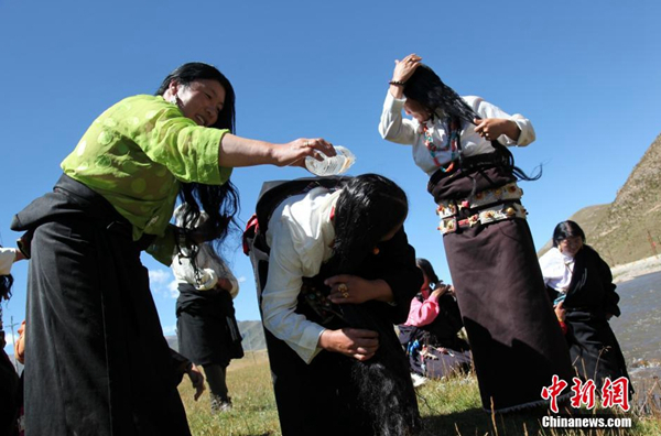 每年的夏末秋初,藏族同胞迎来一年一度的“沐浴节”。“沐浴节”,藏语称为“嘎玛日吉”,为期7天。这项古老习俗已经延续了800多年。西藏流传民谣,“待到弃山星升起,清净温暖好沐浴。”也就是说,在“弃山星(金星)””照亮雪域高原的七天里,藏族民众在星光照耀过的水流中沐浴,可祛除身体病痛、心理杂念,全年健康。