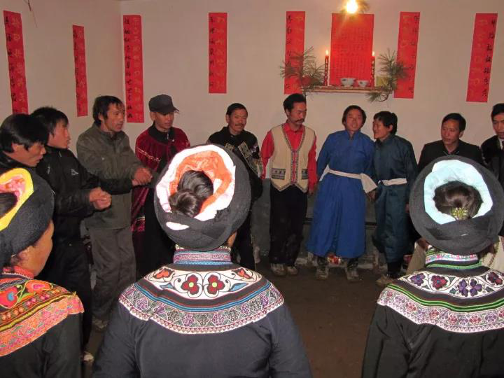 3、源自于宗法礼教。在阿买恳的唱词中,有阿买恳是君长制定的规矩之说,根据彝族典籍文献记载和民间传说,反映古代彝族水西君长家和乌撒君长联姻嫁娶时,都兴阿买恳,说明阿买恳是君长兴起这一说法是由根据的。彝族是一个很重视宗法礼教的民族,各种礼仪习俗和规章制度比较细密而严格,作为人生重大礼仪的婚仪,必然有许多规矩,阿买恳的几十项程序性对答吟诵,就足以说明了这一点。但它也并非完全是“君长制定的规矩”,它更多的是百姓的礼俗和情趣,因为,在阿买恳唱词中反映的劳动场景的内容很多。实事求是的讲,阿买恳应该是由君长所倡导和认可,由广大彝族民众兴起,经布摩和民间歌师共同创作、经民众在演唱过程中反复修订而形成的。