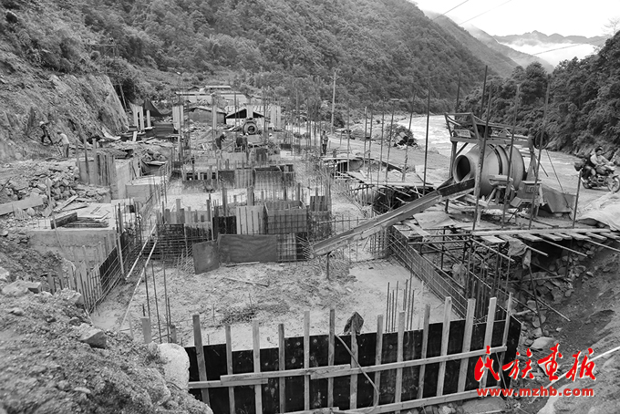 浇筑中的水电站厂房基础