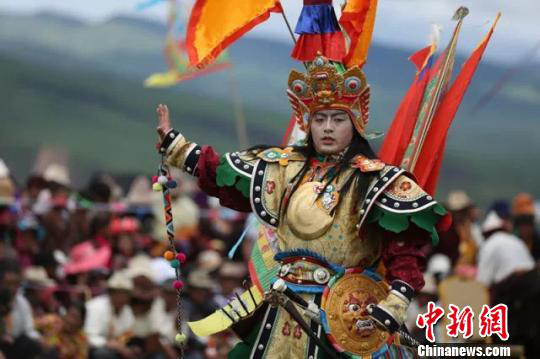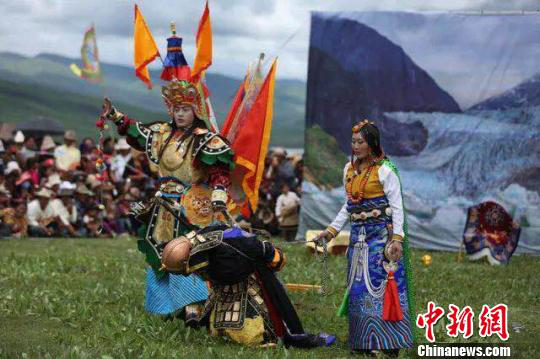 图为挂牌仪式现场上演藏戏《格萨尔王传》 钟欣 摄