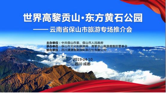 2019年4月10日,“世界高黎贡山·东方黄石公园”保山旅游专场推介会在成都市召开。成都和保山两地旅游界、航空界、新闻界的嘉宾300多人出席推介会。保山市人民政府副市长宋光兴、成都市人民政府副秘书长唐章昭出席推介会并致辞。宋光兴副市长指出,成都素有“天府之国”的美誉,自然风光雄奇险秀,民族风情多姿多彩,巴蜀文化积淀深厚,革命历史可歌可泣,川菜享誉四方,川剧独具魅力,旅游资源得天独厚,是一座传统与现代结合得最好的城市,是“一座来了就不想离开的城市”。高黎贡山作为全球生物多样性最富集的地区,有高等植物4897种,动物2389种,垂直高差达4000多米,几乎分布有中国除沙漠之外的所有陆地气候类型,是国家级自然保护区,是世界公认的地球上最重要的“物种基因库”、是具有国际重要意义的“世界生物圈保护区”,是“三江并流”世界自然遗产的重要组成部分。高黎贡山独特的地质地貌孕育了保山宜人的气候、优良的生态、富集的温泉、秀美的风光、多彩的文化和富饶的物产,使保山成为云南新兴的旅游热点和宜居城市。希望通过这次旅游推介会,能够在成都、保山两地之间架起一座便捷的桥梁,进一步深化两地文化旅游交流合作,共推旅游线路,共拓旅游市场,实现互惠共赢。
