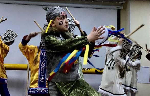 在学校内的一间小型演播室,穿着那乃族演出服装的小演员们表演了许多节目。