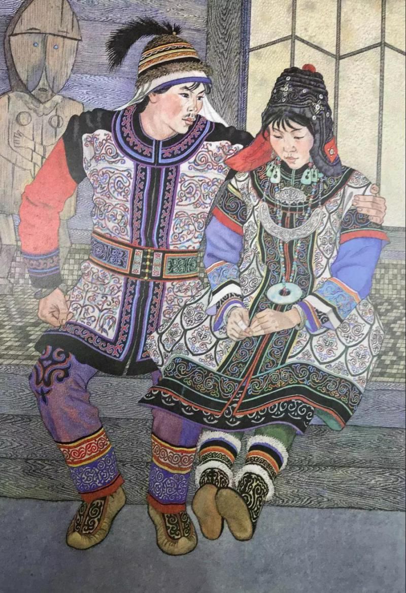 那乃族的插画,有的用细腻的绘画语言真实再现了那乃族的生活场景,有的用生动形象的装饰语言表现了那乃族的传说故事。