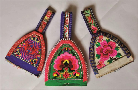 白族刺绣讲究图案和色彩搭配,运针细密均匀,图案大方形象,绣在服饰上或单独作为绣品,都是一件精美的艺术品。