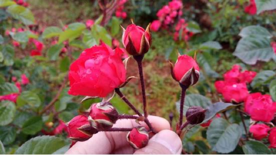 在阿舍乡清香玫瑰合作社的玫瑰花茶基地里,玫瑰花姹紫嫣红,争奇斗艳,美不胜收。为了抢抓玫瑰花采摘最佳时间,花农早晨5点多就已经忙活起来,他们穿行于花海之间,背着箩筐兴高采烈地采摘今年的第一波玫瑰花。
