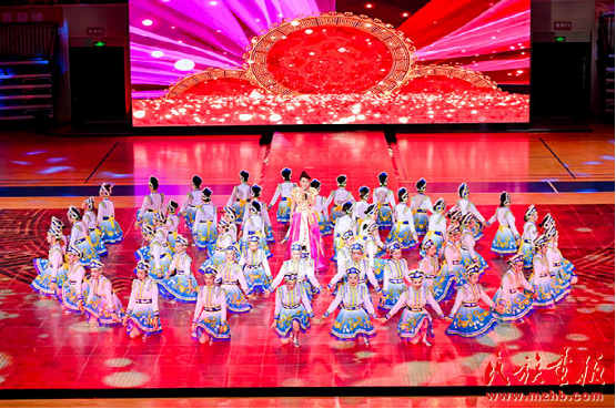 乌兰图雅在广东省第七届少数民族传统体育运动会开幕式上演唱《中华民族一家亲》《最美最美的中国》。