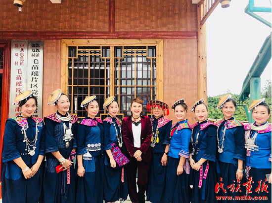 乌兰图雅在广西河池市环江县演出后与各族群众合影留念。