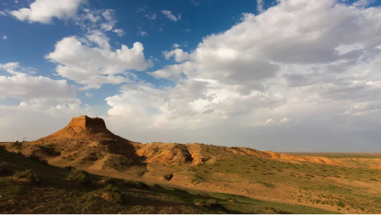 (东红烽火台,位于海南区巴音陶亥镇东红村,整体为红黏土夯筑而成,现高9.3米)