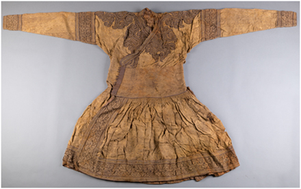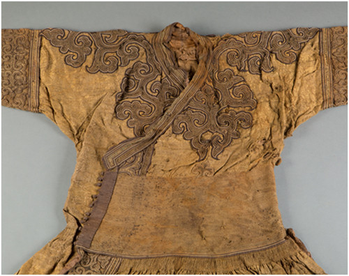 1978年出土于内蒙古包头达茂旗明水墓的蒙元辫线袍 内蒙古博物院馆藏一级文物