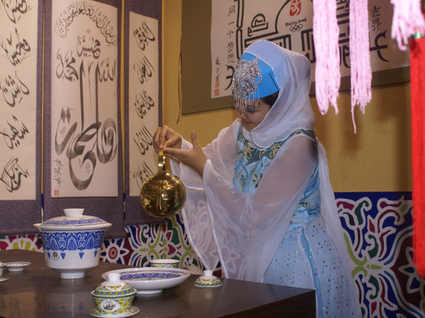 回族饮料非常讲究,凡是不流的水、不洁净的水均不饮用。无论西北东北或西南,也无论是城镇或农村,只要到回族家做客,热情的主人都会首先端上一碗热腾腾的酽茶。回族也很讲究茶具,不少家庭都备有成套的各式各样的茶具。过去煮茶或沏茶所用的壶,一般都由银和铜制做,形式多样,别具一格,有长嘴铜茶壶、银鸭壶、铜火壶等。现在沏茶一般都用瓷壶、盖碗或带盖瓷杯,煮茶多用锡铁壶,夏天讲究用紫砂壶。