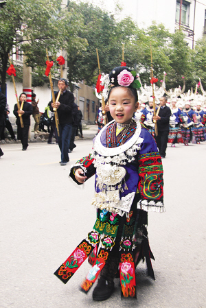 苗族小姑娘也盛装迎苗年