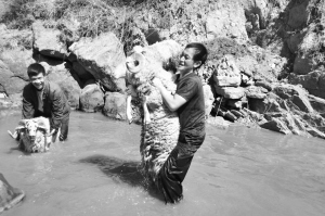 彝族人给绵羊剪毛前要先给它们“洗澡”