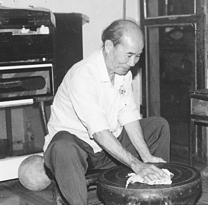 韦万义在精心保护铜鼓